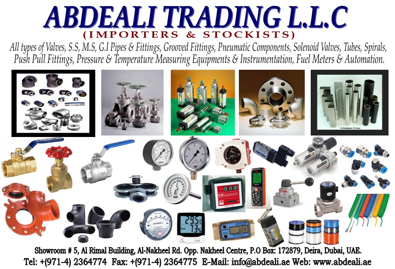 ABDEALI TRADING LLC - Complete one stop industrial Solution under one roof. Valves, Fittings, Pneumatics, Pressure Temperature Gauges, Flowmeter, Level Measurement, Test Equipment.